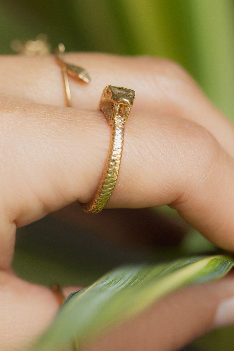 The Amazonia Snake Ring with Fang by Lorena Pestana is a unique jewel that combines a bold design with deep symbolism, ideal for those looking for a distinctive accessory.