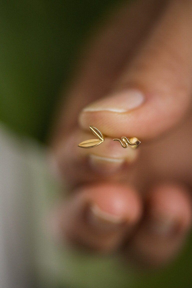 18kts gold earrings, double leaf. Minimalist pieces, laser cut and engraved. 5 x 6mm