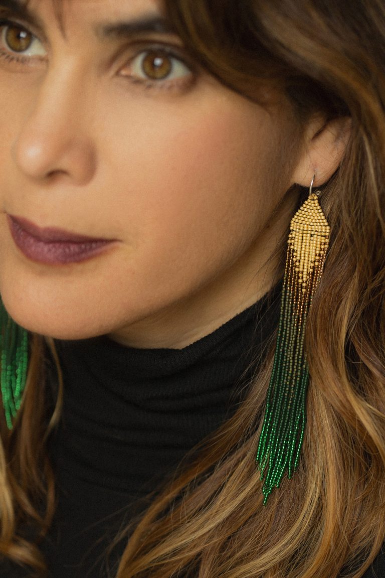 The Long Woven Mostacilla Earrings are unique jewels that combine the art of weaving with the shine of beads, creating a striking and elegant accessory perfect to stand out on any occasion.