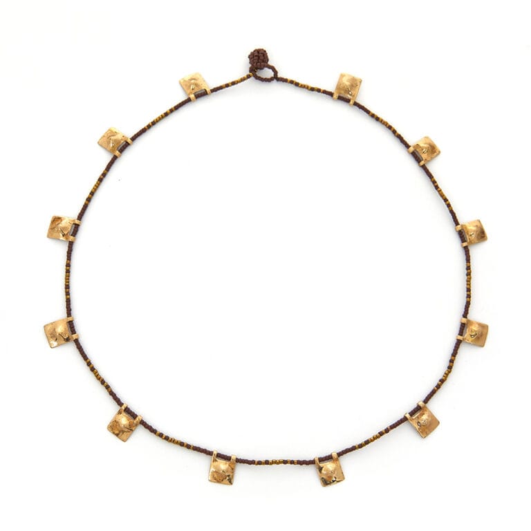 The Cao Square Beads Necklace is a piece of jewelry that pays homage to the art and culture of the Cao civilization, known for its intricate geometric designs and square patterns.