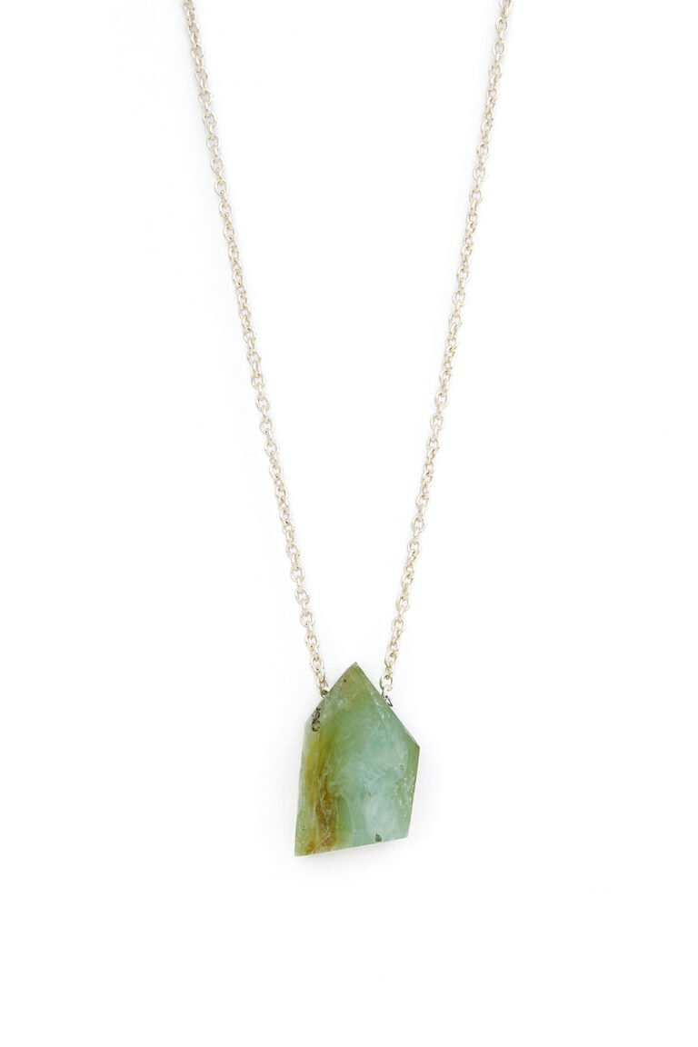 The Dendritic Opal Necklace is a jewel that stands out for the unique beauty of dendritic opal, a variety of opal that presents dendritic or tree-like patterns inside, creating a captivating visual effect.