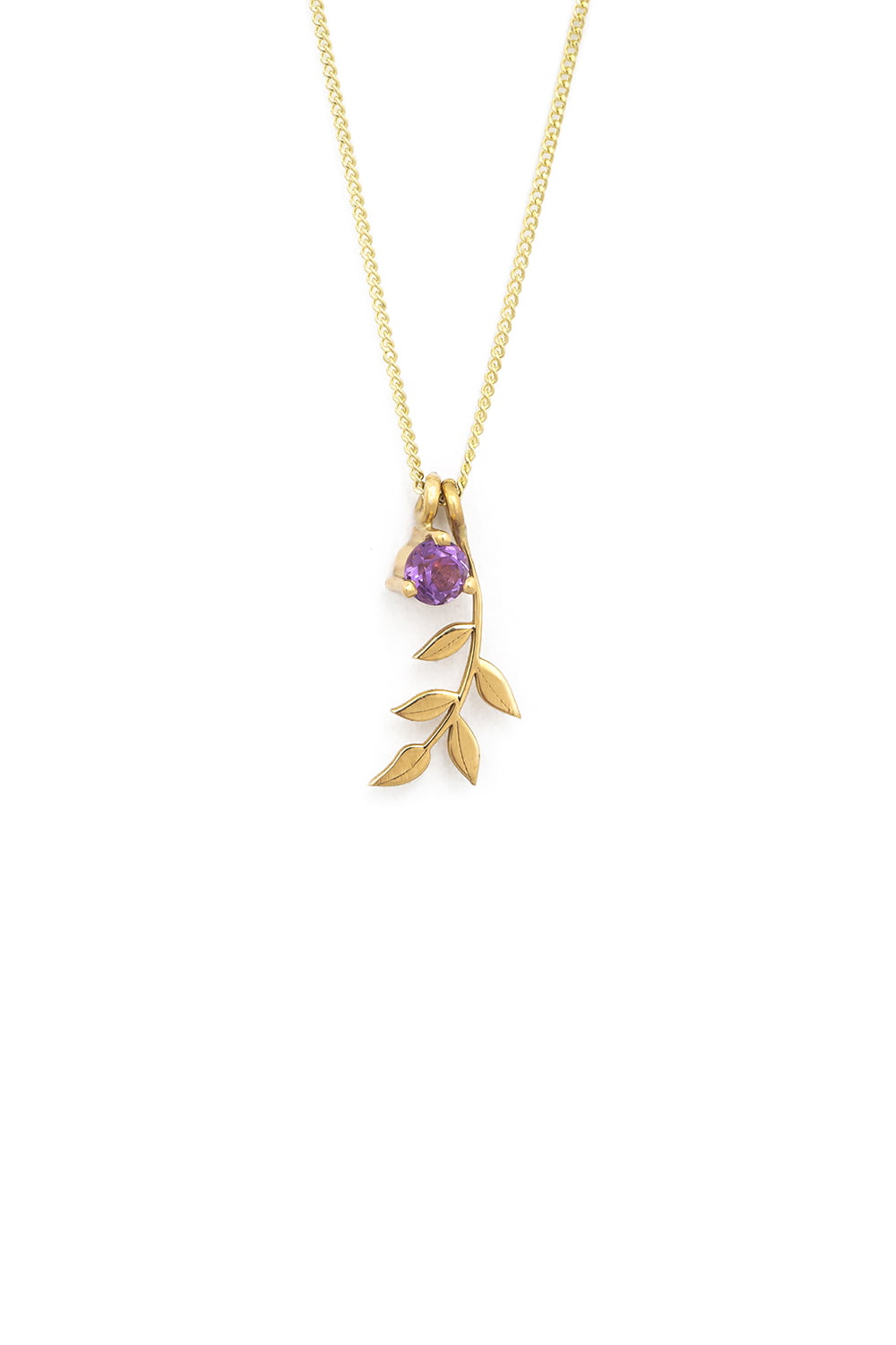 Discover the Gold Necklace with branch charms with leaves and Amethyst 2mm, a jewel that combines the sophistication of gold with the vibrant beauty of amethyst. This necklace is perfect for those looking for a complement that brings a touch of color and elegance to their style.