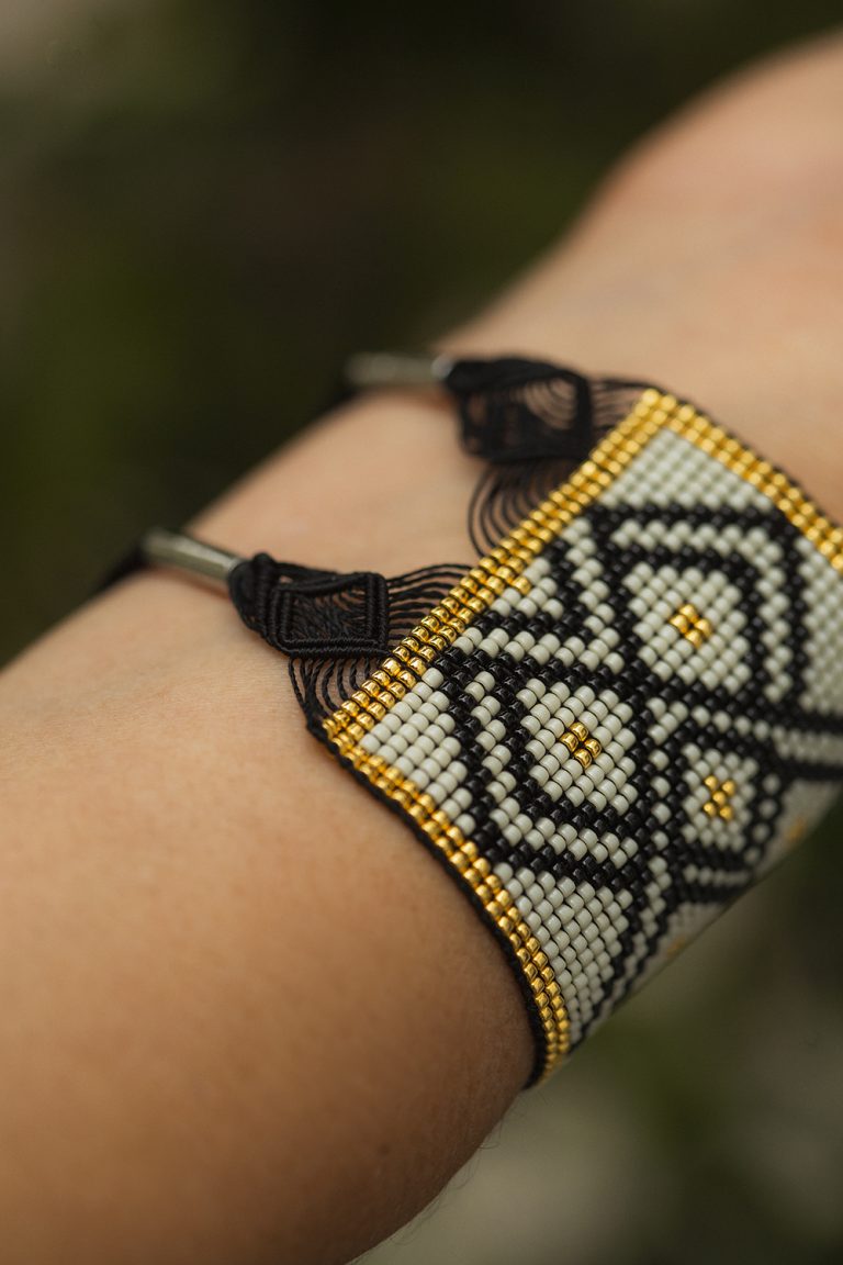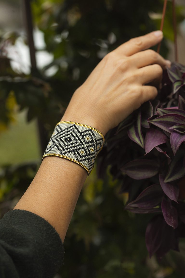 The Loom seed bead bracelet is a handmade accessory that combines the loom weaving technique og Amazonian etnics with the beauty of Toho beads, ideal for those looking for a unique and colorful design.