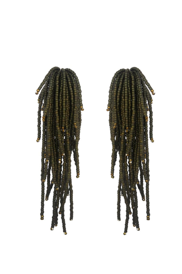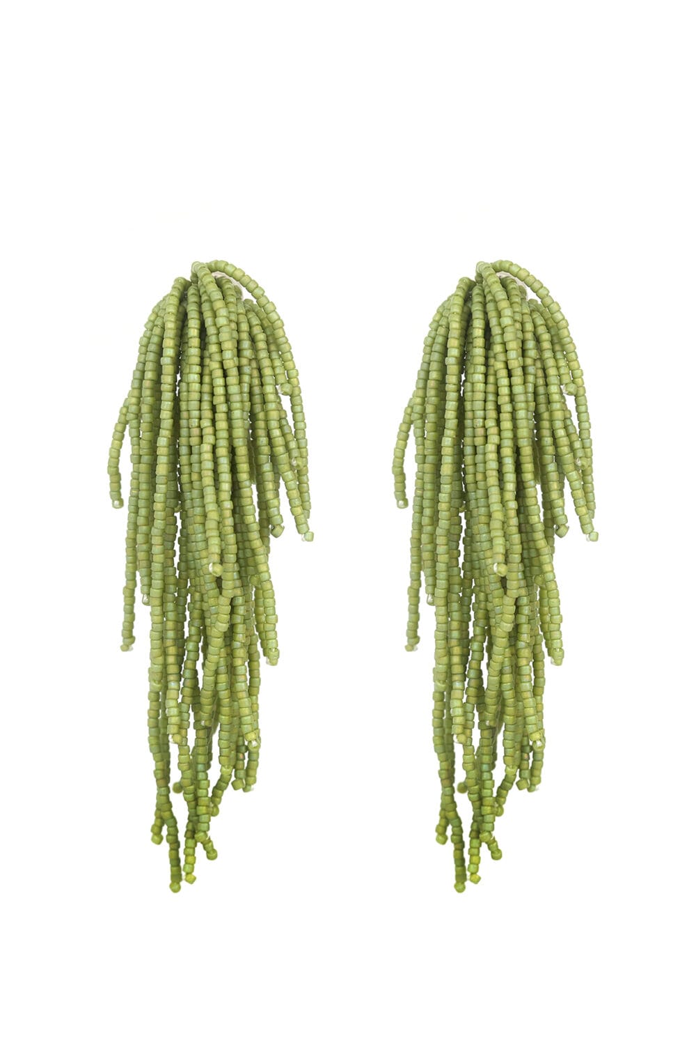 Earring woven in Toho #15 beads and steel thread with a silver base, with color inspired by the color pelta of succulents.