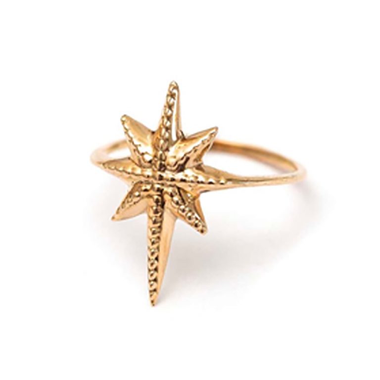 Anillo de bronce hecho a mano con forma de estrella del norte