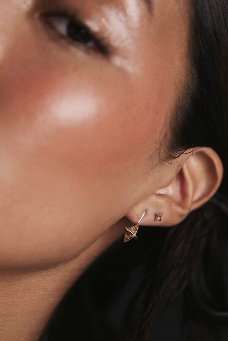 Arete inspirado en la plata de suculenta Crassula Capitella, garfio de plata y pieza en bronce.