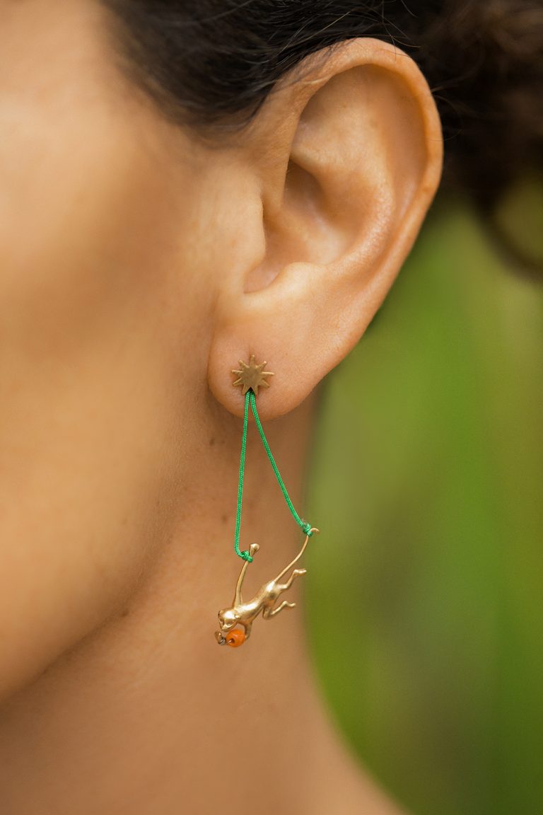 Arete mono de bronce e hilo satín, con palito y tick de plata 950.