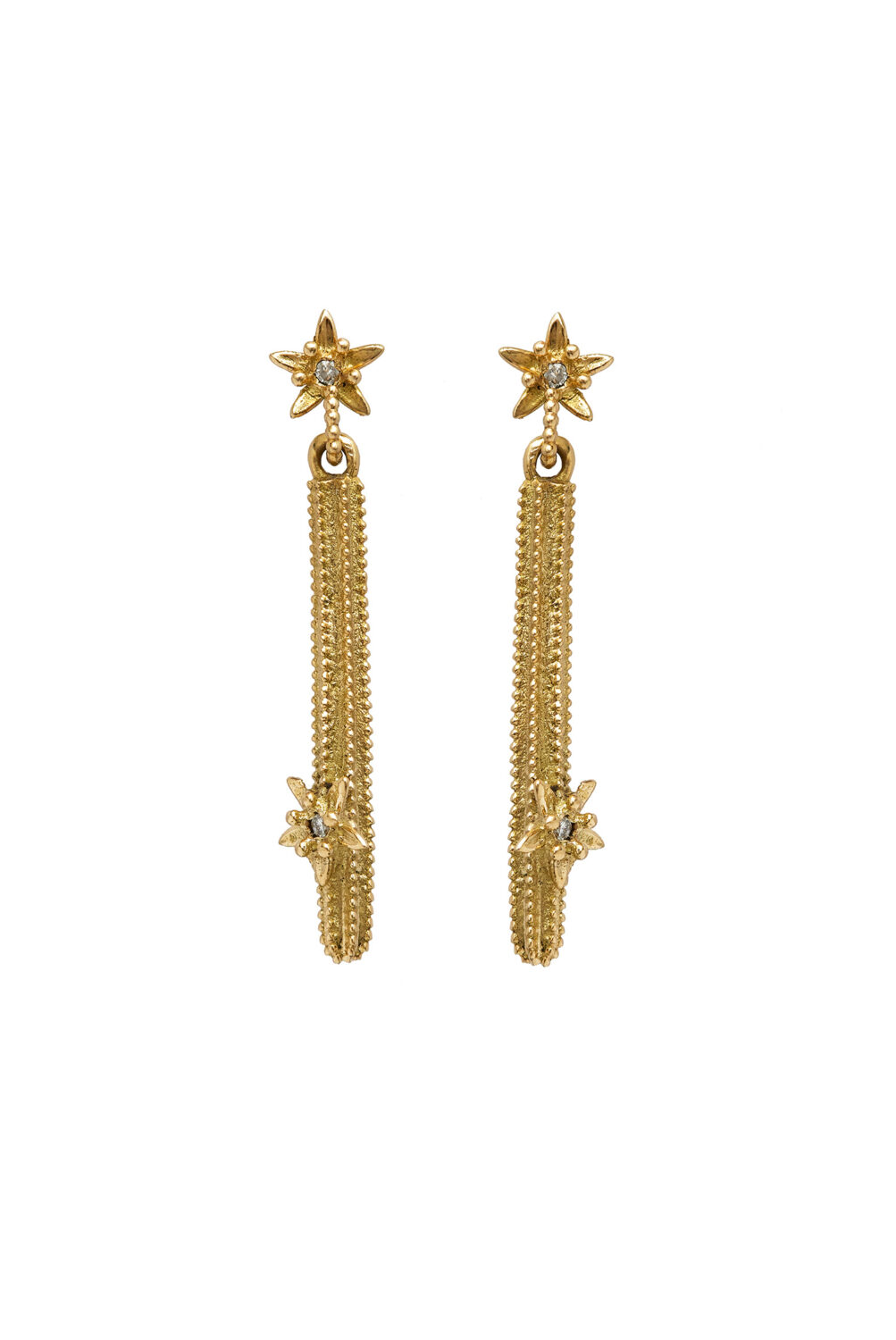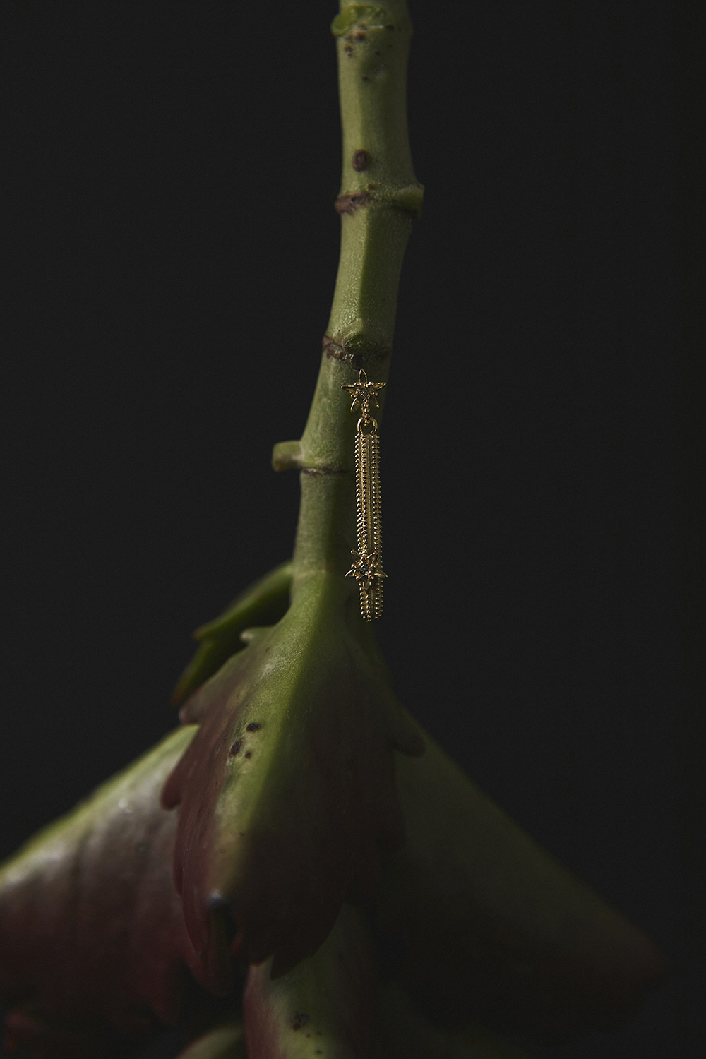 Aretes en forma de suculenta euphorbia y flor de jade con diamante central en oro de 18kt.