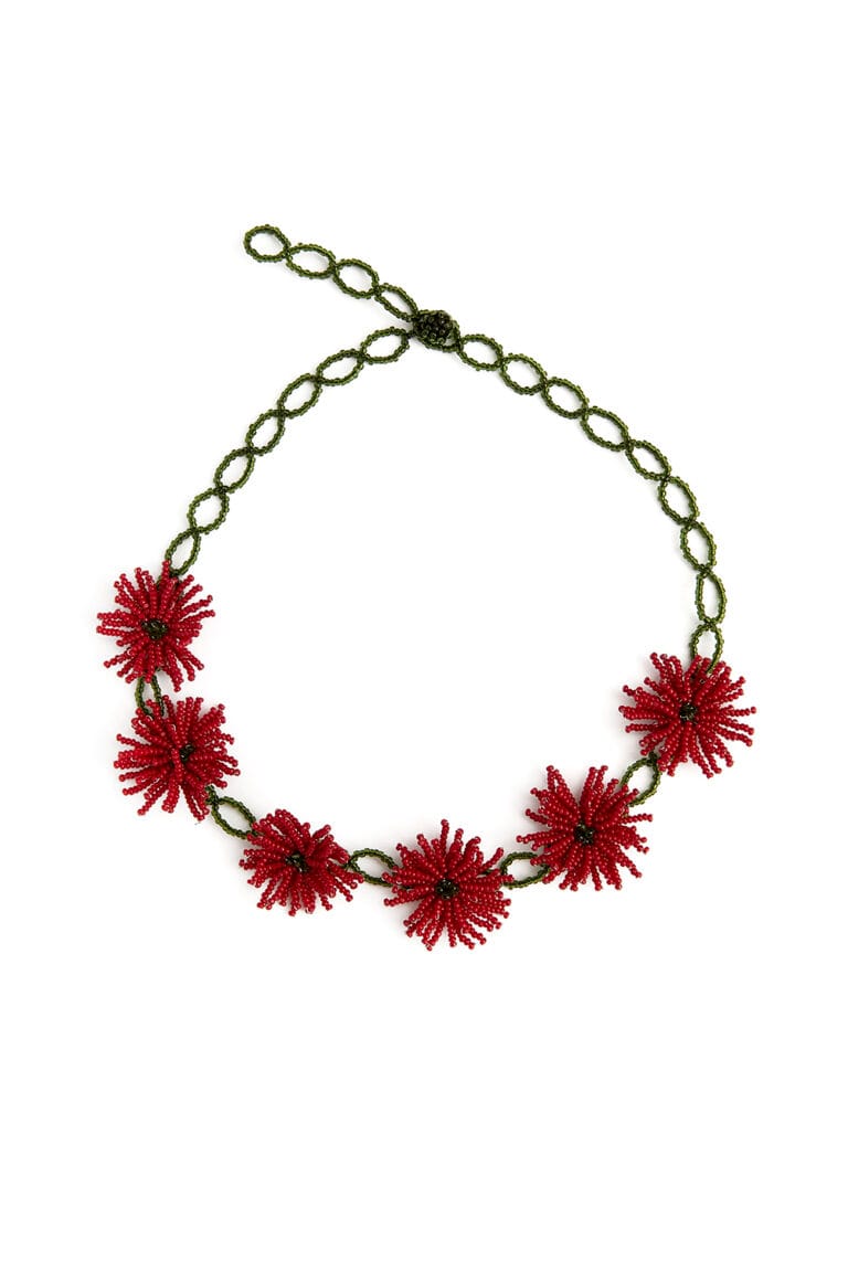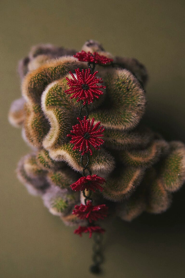 Collar inspirado en la flor de suculenta baby sun rose, tejida en mostacillas con hilo de acero.