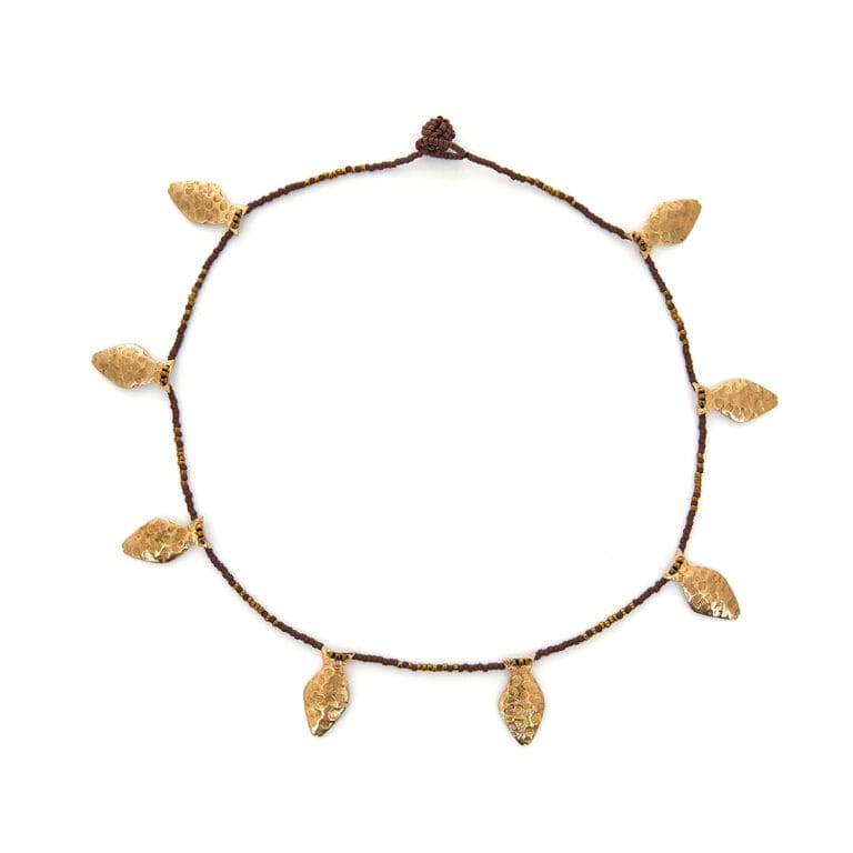 Collar de mostacillas toho y cuentas de bronce en forma de pez.