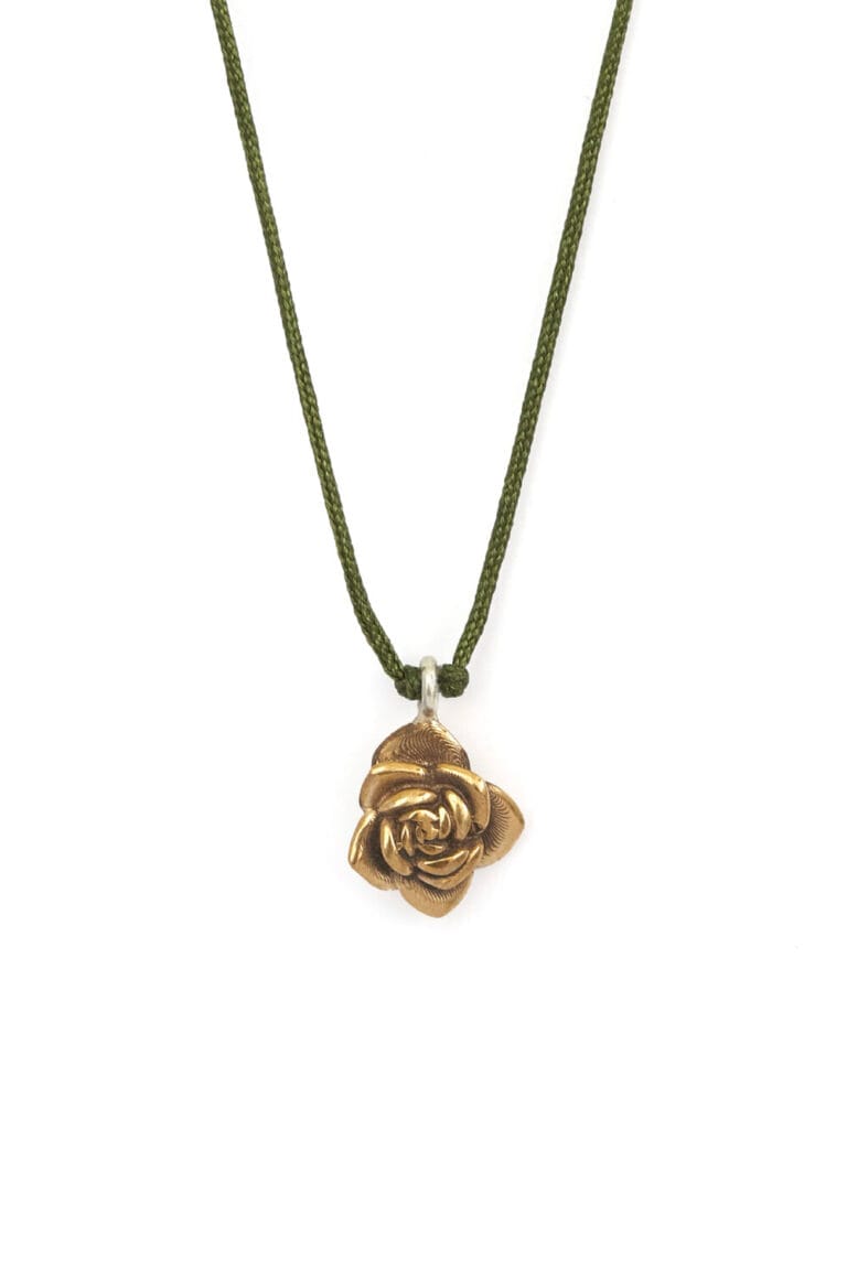 Dije inspirado en la roseta de la suculenta Echeveria Lola, de bronce y cordón de satín.