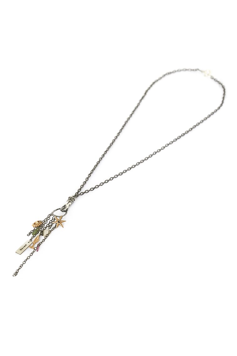 Collar con cadena de bronce con baño metalizado y cuentas de plata, bronce y turmalinas.