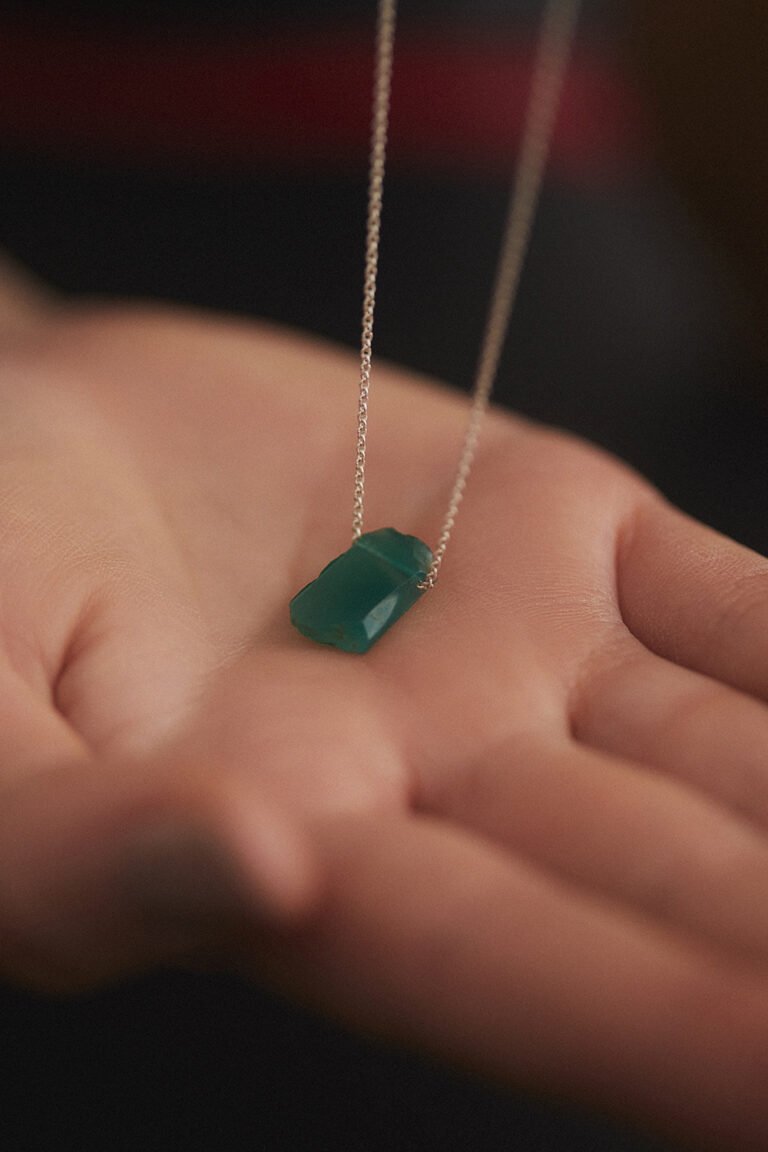 Collar onyx verde de forma irregular con cadena de plata 950.