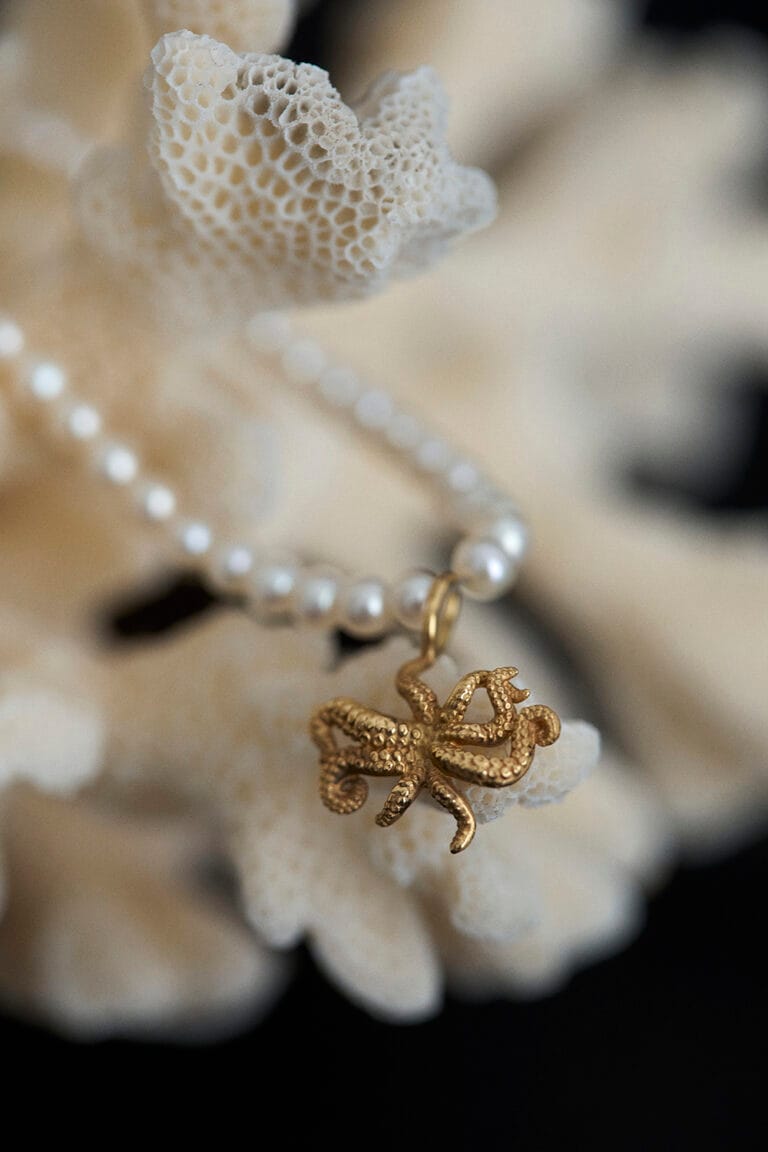 Collar pulpo de oro de 18kt con perlas de agua dulce de 3 a 5 años de cultivo y broche de oro.