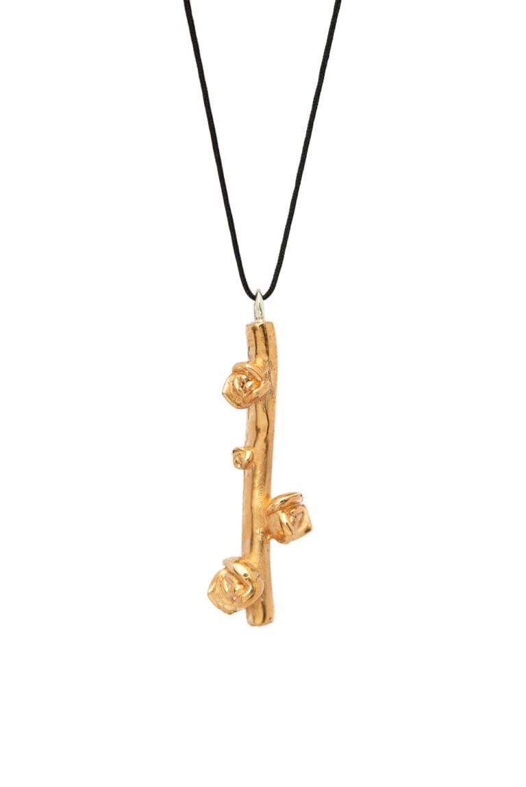 Collar con dije de bronce de tronco con rosetas de Echeveria Lola y cordón de satín.