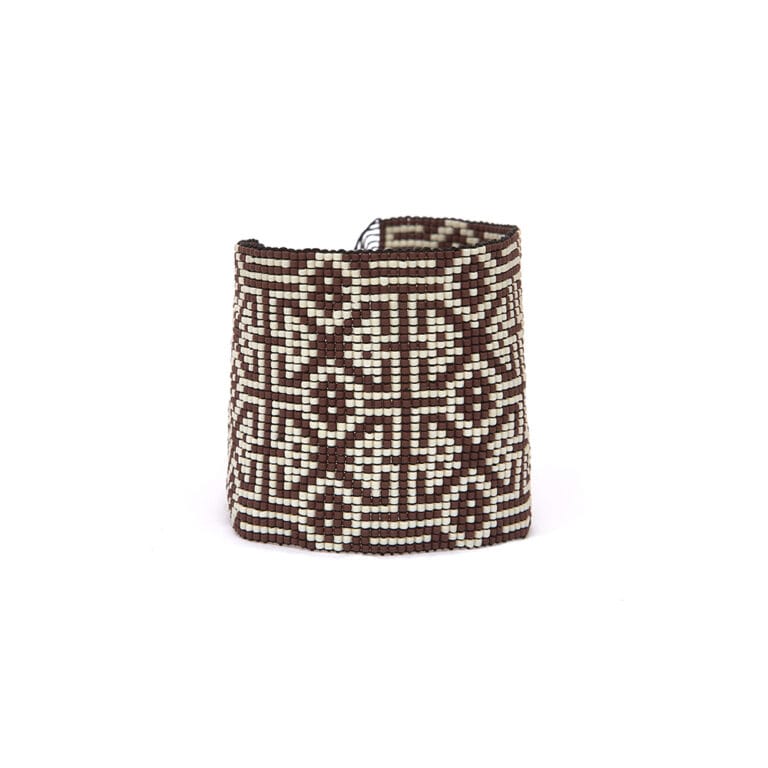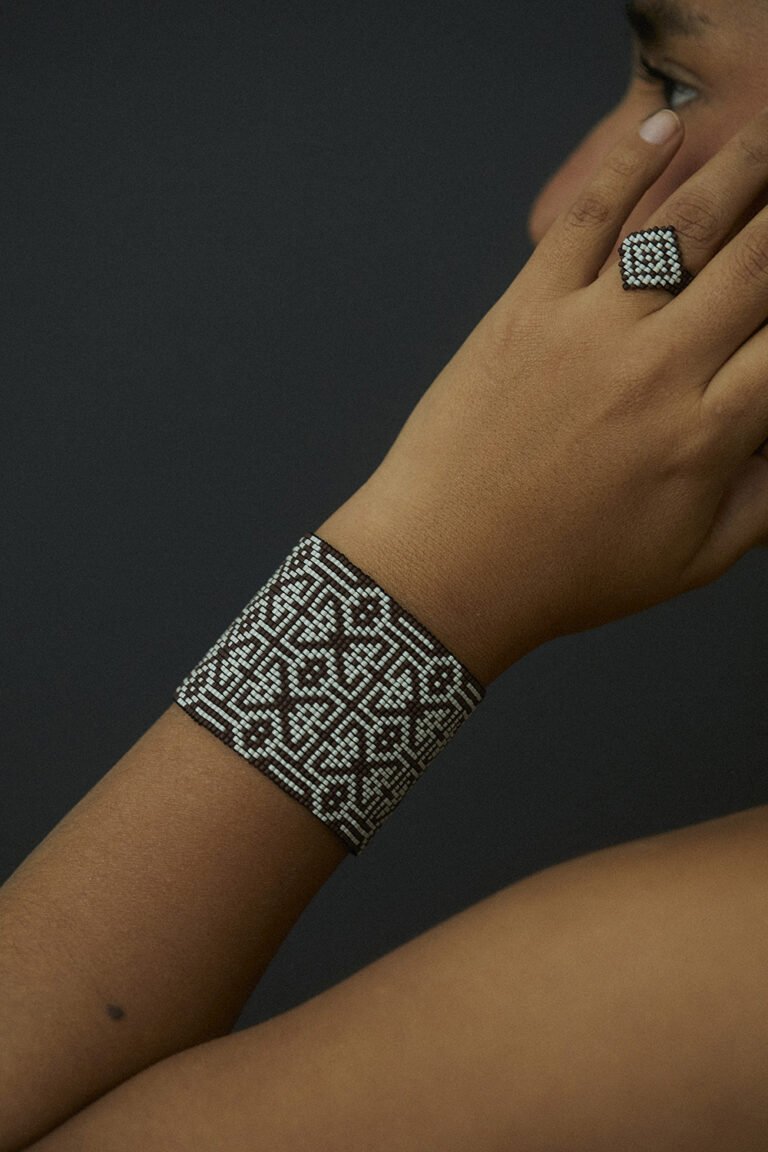 Pulsera tejida a telar con mostacillas toho y macrame con cordon de satin.