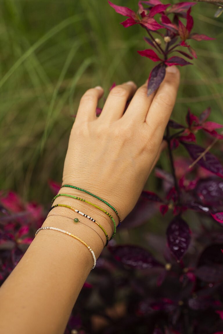 Pulsera tejida con mostacillas toho#15 en cordón de satín.